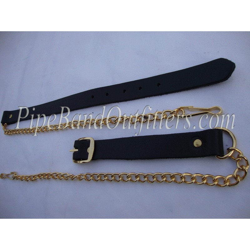 A brass chain belt with either brown or black leather straps, any changing possible.