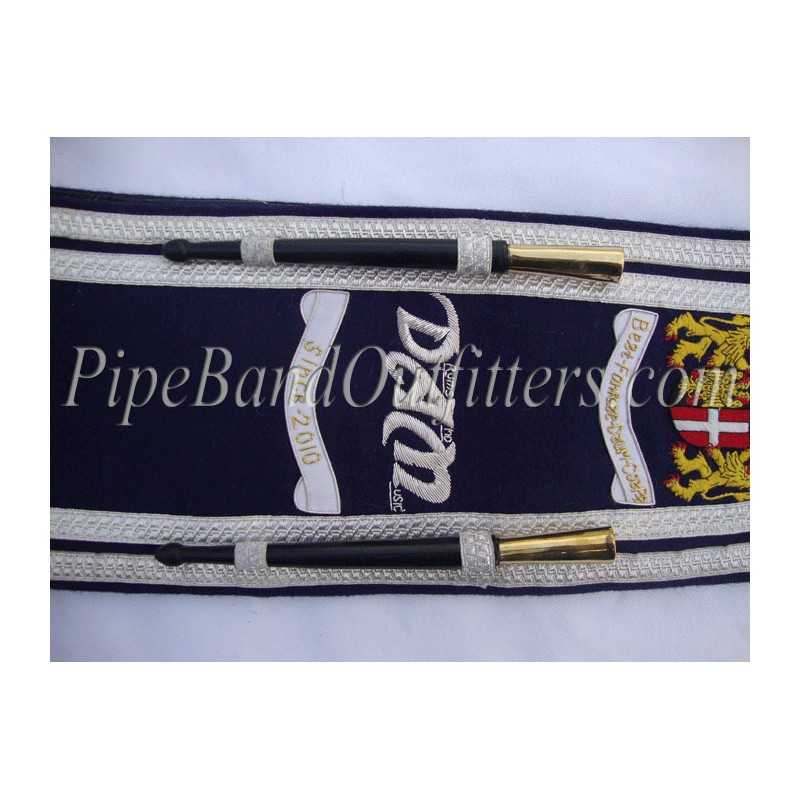 Band Drum Major Dark Blue Custom Made Baldric Sash made for Drum Major of "Best Fanfare Drum Corps" in silver fringes and custom made badges on baldric.