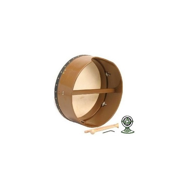 Single removable bar. Bolt tuning is hidden on the inside of the frame. Goatskin with rosewood frame. Includes a tipper and a tuning wrench.