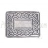 Celtic Waist belt buckle nickel plated celtic design on the front used for pipe band waist belts.