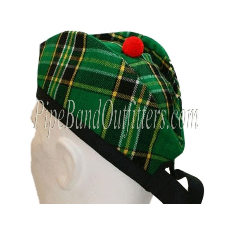 Irish Green glengarry hat. Fully lined, red pom pom on top.