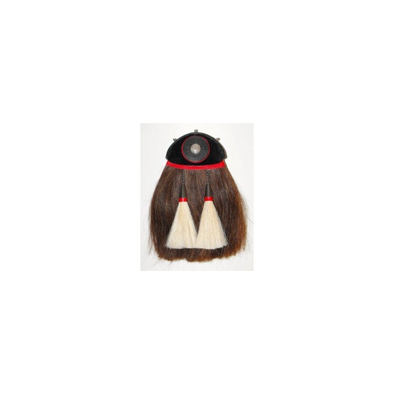 Brown horsehair body, two whie horsehair tassels, heavy duty leather chain belt, any changing possible.