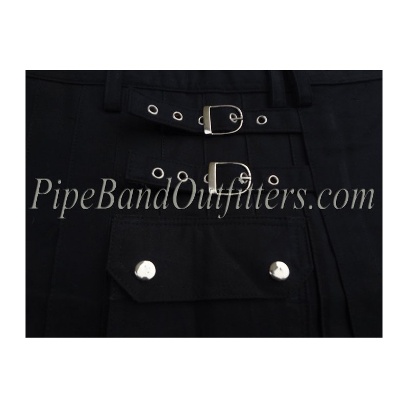 Heavy duty cotton drill fabric, sewn down pleats on the back, carpenters Flap Pockets with studs on both sides, antiqued brass buckles and studs, internal studs for better hold...