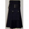 Heavy duty cotton drill fabric, sewn down pleats on the back, carpenters Flap Pockets with studs on both sides, antiqued brass buckles and studs, internal studs for better hold...