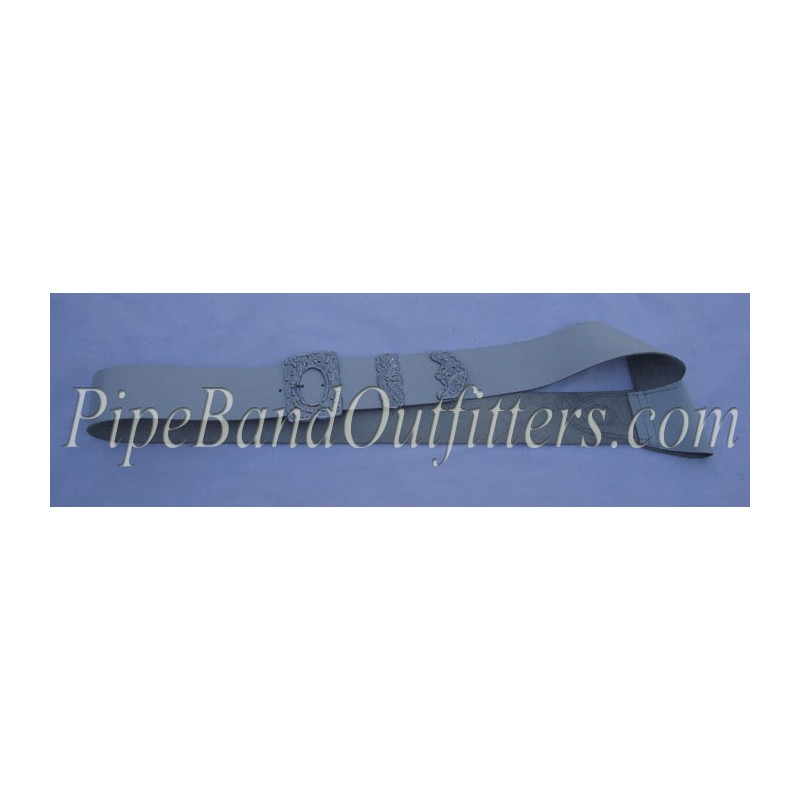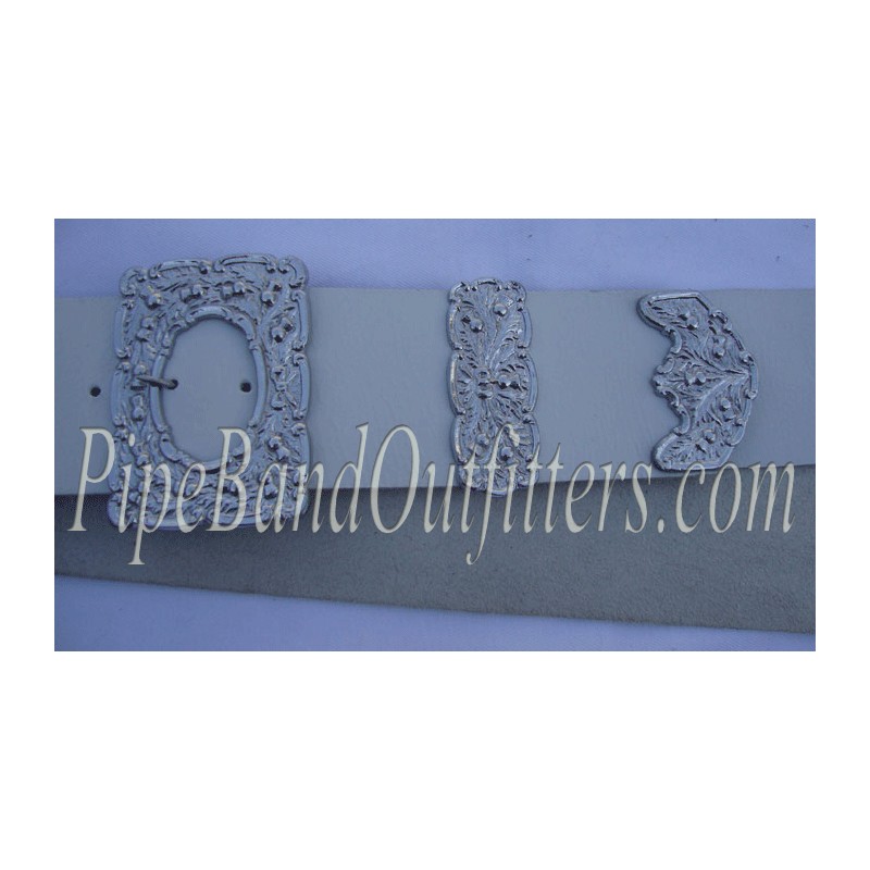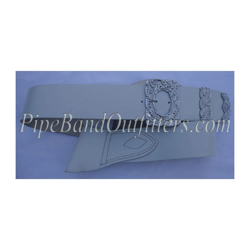 High quality pure leather white cross belt with nickel plated thistle mounts.