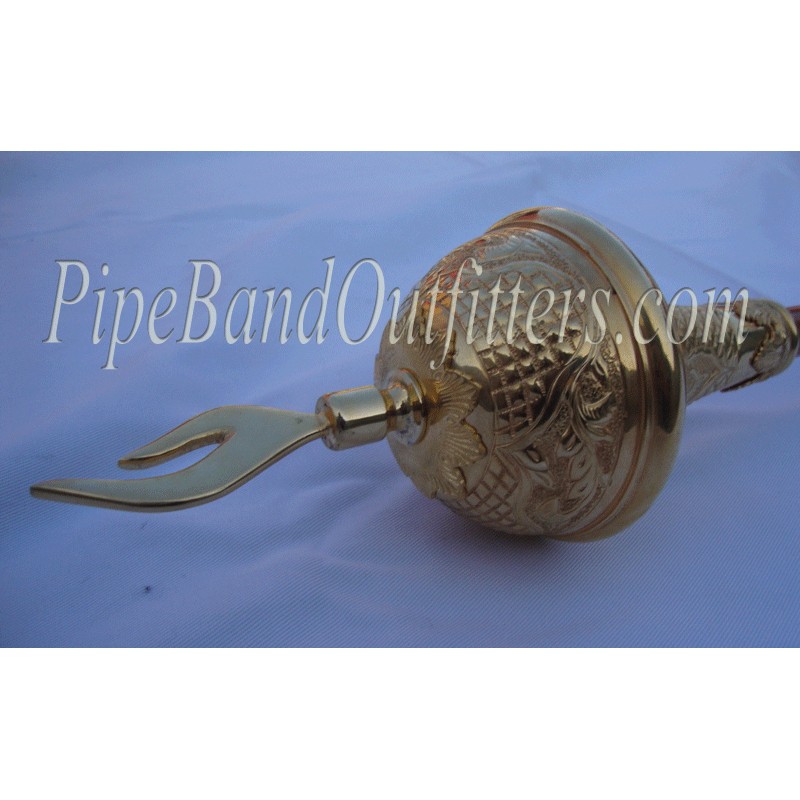 Mace Head is surmounted by flame which sits on a leafing pattern. Dome and bottom section is impressed with a unique pattern. At the bottom of the trumpet shape is a leafing pattern which extends upward approximately 1 1/4 inch. Any changing is possible.