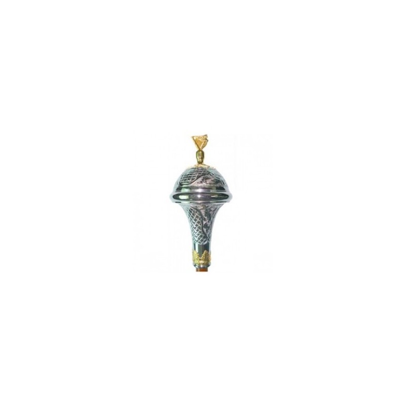 Mace Head is surmounted by harp crown which sits on a leafing pattern. Dome and bottom section is impressed with a unique pattern. At the bottom of the trumpet shape is a leafing pattern which extends upward approximately 1 1/4 inch. Any changing is possible.