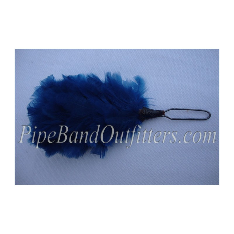 Blue 3 inch feather hackle designed to be tucked in behind a glengarry or balmoral hat's backing rosette, any changing possible.