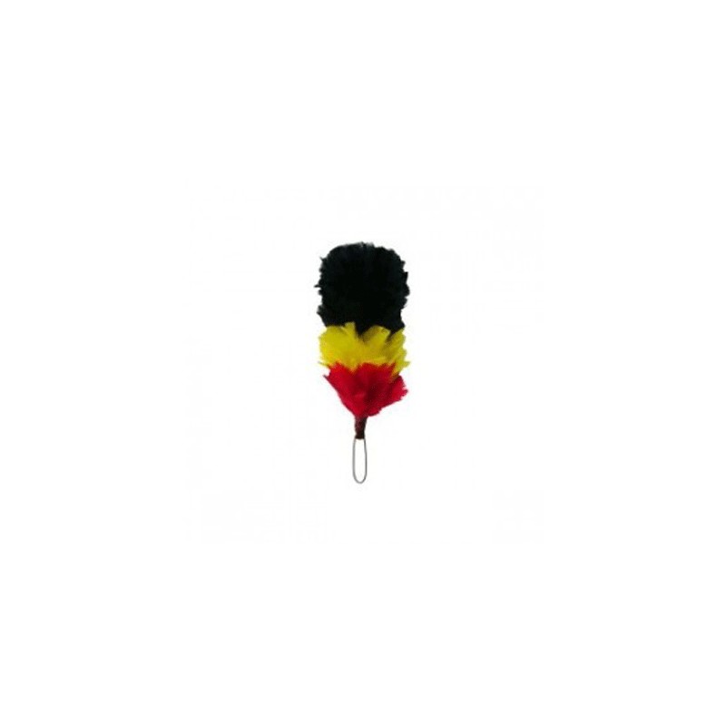 Black / Yellow / Red 3 inch feather hackle designed to be tucked in behind a glengarry or balmoral hat's backing rosette...